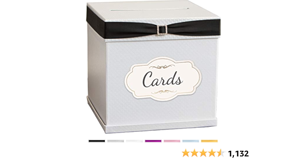 Amazon Com Wedding Card Box 7 Satin Ribbon Colors Rhinestone Buckle 10x10x10 Large Elegant White Finish Perfect For Gifts Birthdays Graduations Bridal Or Baby Showers By Merry Expressions Home Kitchen